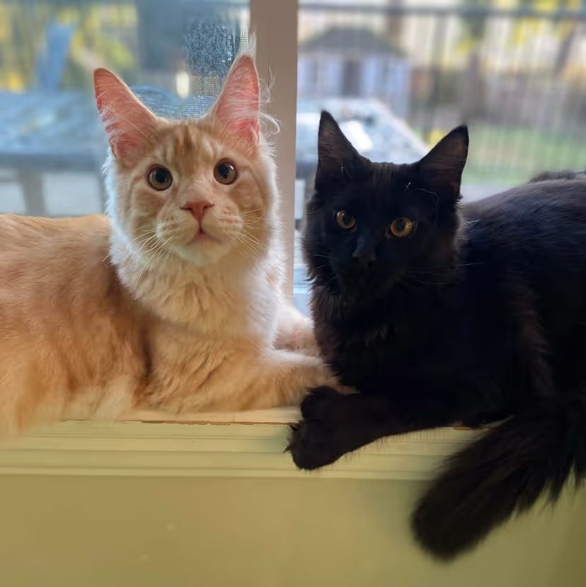 Meet Enzo and Te Amo, our resident therapy cats! Te Amo, on the left, is a real love-hog and absolutely adores being the center of attention—especially with kids. Though he started out bigger, he had to fight for his place once Enzo caught up in size. Now he’s always eager to bond with anyone who walks through the door.